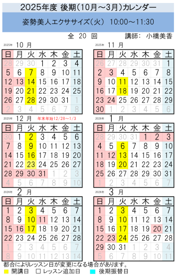 【日程変更のお知らせ】姿勢美人エクササイズ 11/25→12/23
